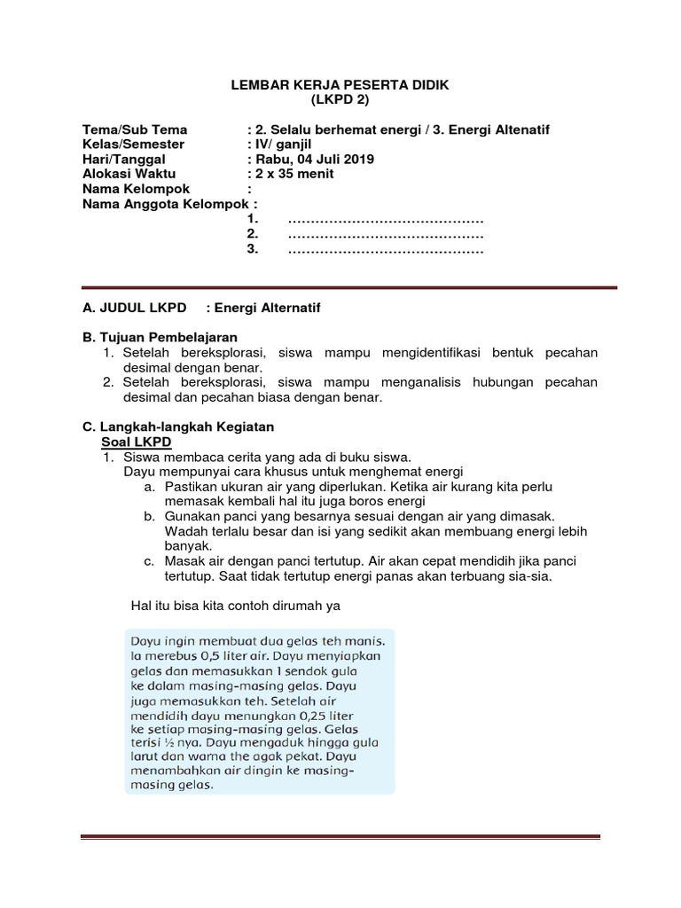 Sbdp, ipa, bahasa indonesia other contents Lembar kerja peserta didik (lkpd) atau biasa disebut dengan… materi pembelajaran ipa kelas 5 : Video pembelajaran ini mengacu pada buku siswa tema 1 tematik k13 revisi 2017. Rencana pelaksanaan pembelajaran (rpp) kelas iv tema 2 (selalu berhemat energi) subtema 3 (energi alternatif) pembelajaran 3. Hal 60 berbentuk apakah simbol sila kedua pancasila?